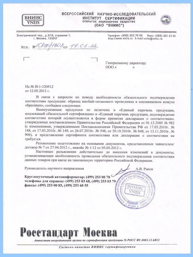 - стандартны, как доказательства, что товар сертификации не подлежит.